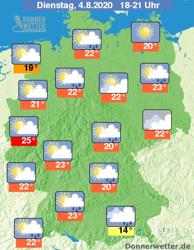 Die Temperaturen gehen im Abendverlauf auf Werte um 22 Grad in der Kölner Innenstadt und 13 Grad im Berchtesgadener Land zurück.