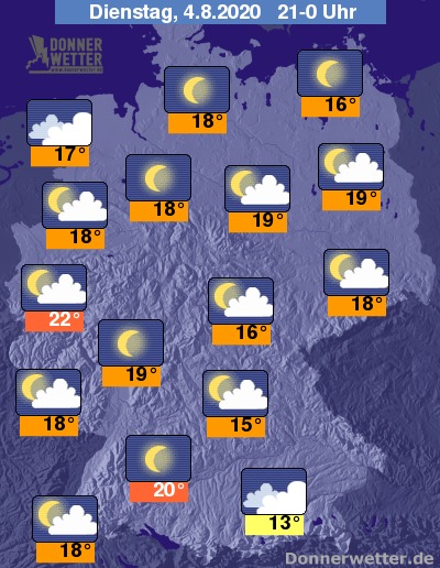 Tiefstwerte am späteren Abend um 22 bis 13 Grad.
