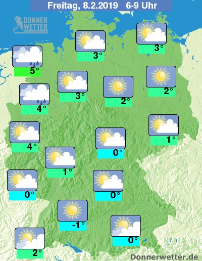 Die Temperaturen sinken auf Werte um 5 Grad C in Ostfriesland und um 0 Grad C im Odenwald.
