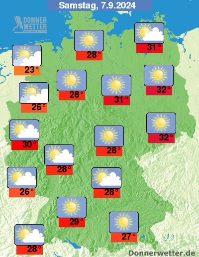 Die Temperaturen erreichen Höchstwerte um 23 an der Nordseeküste und 32 Grad an der Spree.