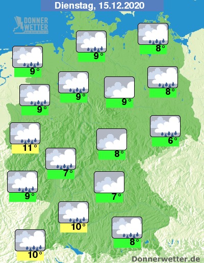 Die Höchsttemperaturen liegen allgemein zwischen 6 Grad in Sachsen und 11 Grad in der Kölner Bucht.