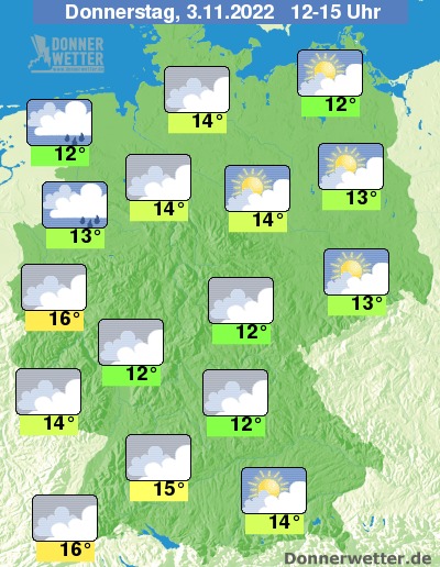 Heute Nachmittag zeigt sich das Wetter überwiegend trüb oder stark bewölkt. Auflockerungen sind vor allem über der Osthälfte des Landes möglich. Es bleibt weitgehend trocken, lediglich vom Niederrhein bis ins Emsland sind bereits erste Regenfälle möglich. Die Temperatur liegt bei 12 Grad an der See und bis 16 Grad im Breisgau. An den Küsten weht ein zum Teil stürmischer Wind.