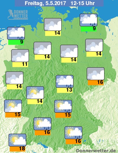 Über Mittag lassen die Regenfälle nun auch in der Nordhälfte endlich nach, dennoch muss auch weiterhin im ganzen Land mit vereinzelten Tropfen gerechnet werden. Dazwischen kommt jedoch vor allem im Süden immer häufiger die Sonne zum Vorschein.