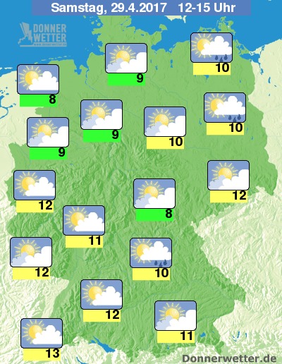 Heute Nachmittag ziehen mal mehr mal weniger Wolken übers Land hinweg. Am meisten Sonnenschein ist dabei im Südwesten Deutschlands zu erwarten. Über dem Nordosten und auch teils über dem Osten ziehen dichte Wolken durch, die für einzelne Schauer sorgen können, sonst bleibt es aber trocken. Die Temperatur liegt bei kühlen 8 Grad in Ostfriesland und etwa 13 Grad im Breisgau.