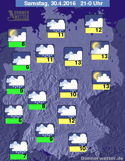 Heute Nachmittag ist es im Osten und Südosten noch gebietsweise aufgelockert bewölkt, oft aber auch schon stark bewölkt, hier bleibt es jedoch meist trocken. Über der Westhälfte und dem Norden ist die Wolkendecke hingegen weitgehend verschlossen und es bilden sich wiederholt Schauer, zudem sind auch einzelne Gewitter möglich. Die Temperatur steigt auf teils nur 10 Grad im nördlichen Emsland und bis 19 Grad in der Lausitz.