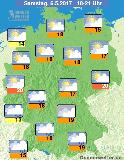 Heute Abend breitet sich der Regen aus Südwesten noch weiter nach Nordosten hin aus, während es über dem Osten und Nordosten des Landes oft auflockert bewölkt und trocken bleibt. Im übrigen Land ist es teils heiter, teils können auch dichtere Wolken durchziehen, dazu bleibt es weitgehend trocken. Die Temperatur liegt noch bei 13 Grad am Pfälzer Wald und bis 20 Grad in der Kölner Bucht.