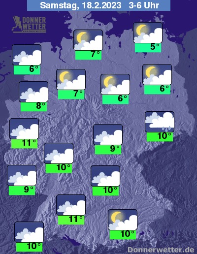 In der kommenden Nacht bleibt es zunächst dicht bewölkt und die Regenfälle ziehen sich in abgeschwächter Form in den Süden zurück und klingen auch hier nach und nach weiter ab. Im übrigen Land bleibt es schon weitgehend trocken und in der zweiten Nachthälfte kann die Bewölkung im Norden und Nordosten gebietsweise auflockern. Die Temperatur sinkt auf 11 Grad in Stuttgart und 5 Grad in Neubrandenburg. Der Wind weht im Norden und Osten noch oft stark bis stürmisch, vor allem an der Ostsee herrscht noch teils schwerer Sturm, ansonsten lässt der Wind spürbar nach.