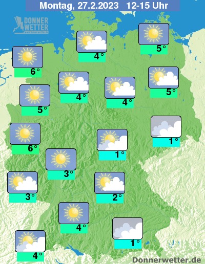 Die Temperaturen erreichen am Nachmittag Werte um 1 Grad in Erfurt und um 7 Grad in Köln.