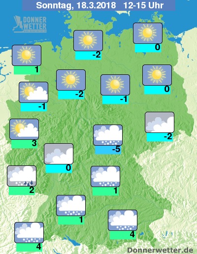 Heute Nachmittag bleibt es über der Südhälfte der Republik bedeckt und es fällt auch vielerorts Schnee, vor allem im Südwesten auch teils Schneeregen oder Regen. Es besteht verbreitet Glättegefahr! im Norden strahlt die Sonne von einem überwiegend wolkenlosen Himmel, dabei bleibt es trocken. Die Temperatur liegt bei -5 Grad am Thüringer Schiefergebirge und bis 4 Grad im Breisgau.