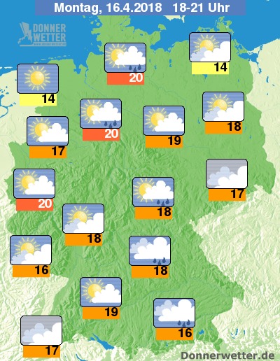 Heute Abend sind vor allem am Alpenrand und im Südosten des Landes, sowie vereinzelt im Norden Schauer möglich, sonst ist es im Osten und Nordosten oft stark, teils aufgelockert bewölkt und trocken. Über der übrigen Westhälfte ist es verbreitet heiter bis aufgelockert bewölkt und trocken. Die Temperatur liegt bei 14 Grad an der Ostsee und bis 20 Grad in Köln.
