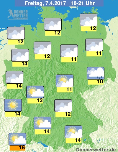Heute Abend kann sich im Südwesten und Süden häufig die Sonne zwischen den meist lockeren Wolkenfeldern zeigen. Im übrigen Land bleibt es hingegen meist stark bewölkt und im Osten fällt noch gebietsweise Regen, sonst bleibt es trocken. Die Temperatur liegt bei 10 Grad im Vogtland und bis 16 Grad in Freiburg.