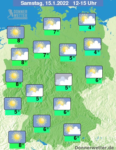 Heute Nachmittag ist es zum Teil trüb oder stark bewölkt, gebietsweise, bevorzugt im Westen und Südwesten zeigen sich Aufheiterungen oder es ist sonnig. Es bleibt landesweit trocken bei etwa 4 Grad in Stralsund und bis 8 Grad in Freiburg.