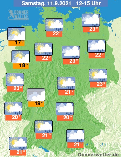 Die Temperaturen erreichen am Nachmittag Höchstwerte um 17 Grad in Emden, 21 Grad in der Fränkischen Schweiz und 24 Grad in Chemnitz.