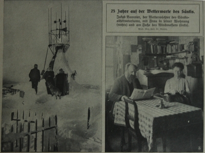 Der Mörder übrigens war ein Bayer, der es auf den Schmuck und die Habseligkeiten der Wetterwartsfamilie abgesehen hatte. Er erhängte sich vor dem Zugriff der Polizei. Unser Bild zeigt den Vorgänger des ermorderten Wetterwartes und seine Familie auf dem Säntis im Jahr 1907.