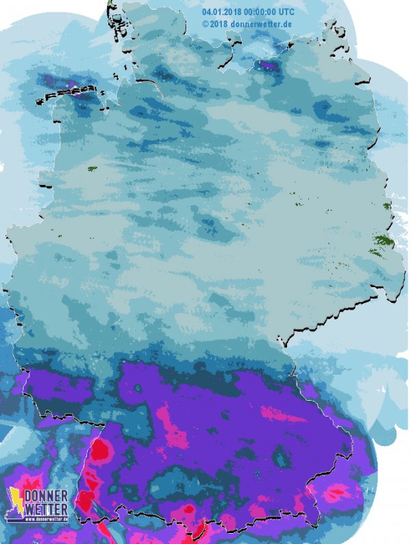 Nach dem Sturm von legte sich der extreme Wind am Donnerstag (04.01.) wieder, dafür regnete es aber in der Südwesthälfte munter weiter, so dass die Pegel der Flüsse weiter anstiegen. Zum Teil gab es bereits schon größere Überflutungen. An den Westhängen des Schwarzwaldes fielen an die 100 Liter Niederschlag pro Quadratmeter. Im Norden wechselten sich kurze Auflockerungen mit etwas Regen oder einigen Schauern ab. Die Höchsttemperaturen lagen zwischen 6 und 9 Grad C, am Oberrhein wurden auch wieder Werte von über 10 Grad C erreicht.