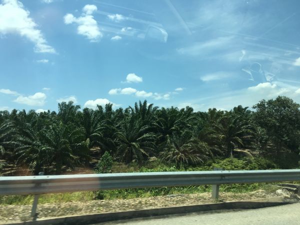 Abb.: Blick auf eine Palmölplantage in Malaysia. Unter den Bäumen wächst nichts. Eine Folge der Pestizide.