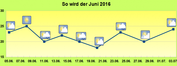 Wer auf heiße Sommertage hinfiebert, muss sich noch ein wenig gedulden: Die aktuellen Berechnungsmodelle prognostizieren für den Juni nur wenige Tage über bzw. an die 30 Grad C.
