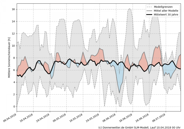 Unsere aktuellen Langfristprognosen für Lufttemperatur, Sonnenscheindauer und Niederschlagshöhe.