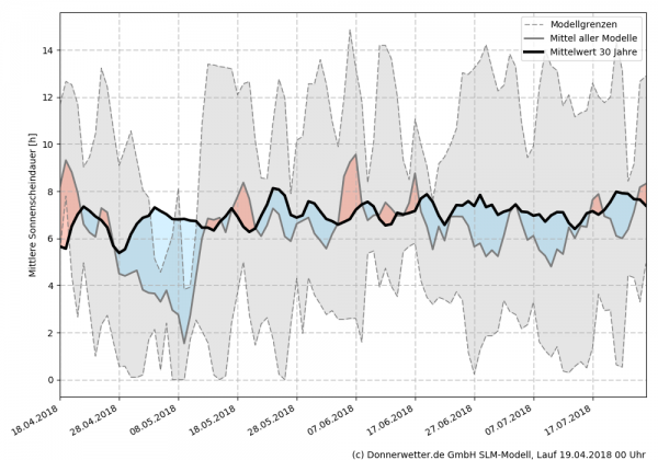 Unsere aktuellen Langfristprognosen für Lufttemperatur, Sonnenscheindauer und Niederschlagshöhe.
