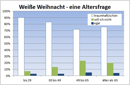 Während also ältere Schleswig-Holsteiner der weißen Pracht an den Feiertagen nur wenig abgewinnen können, sind junge Bayerinnen die größten Fans einer weißen Weihnacht.