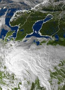 viele Wolken noch im Satellitenbild zu sehen