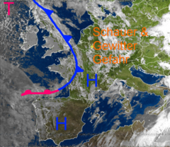 Regen- und Gewitterwolken auf dem Weg nach Deutschland
