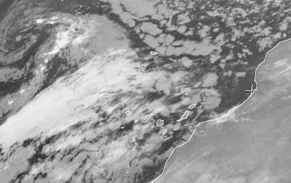 Ein Tief sorgt derzeit für dichtere Wolken über den Kanarischen Inseln. Dennoch fällt aus diesen Wolken kein Regen, denn die Luft ist einfach viel zu trocken, als das Regen den Boden erreichen würde.