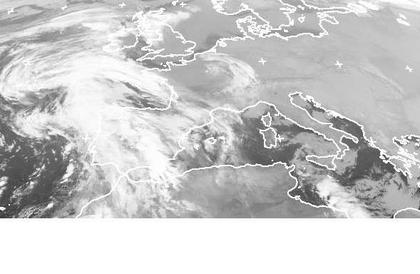 Vor allem über Spanien und Portugal, aber auch an der Westküste Frankreichs bringen Tiefausläufer vom Atlantik her dichte Wolken und örtlich etwas Regen. Ein schwacher Tiefausläufer liegt auch über dem Südwesten Deutschlands und sorgt hier für teils gefrierenden Regen. Sonst ist es in Europa unter Hochdruckeinfluss teils heiter, teils auch trüb, aber weitgehend trocken. (Bildquelle: NERC Satellite Receiving Station, Dundee University, Scotland, http://www.sat.dundee.ac.uk/)