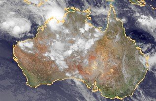 Auf dem heutigen Satellitenfoto zeigen sich vor allem über dem Nordwesten von Australien vielfach hochreichende Quellwolken, die dort gebietsweise zu ergiebigen Niederschlägen führen. Deutlich trockener ist es dagegen in der Osthälfte des Kontinents.