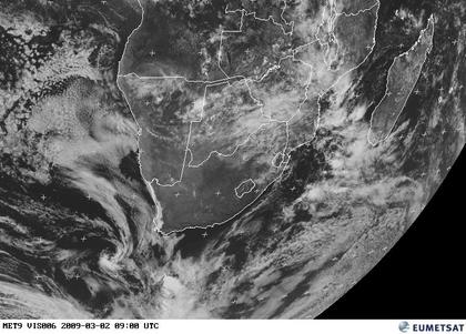 Das heutige Foto vom Süden Afrikas zeigt mit Ausnahme von Namibia und Südafrika verbreitet viele, teils dichte Wolken. Sie sorgen besonders in Mocambique, Botswana, Simbabwe und Sambia vielerorts für teils kräftige und ergibige Niederschläge. Aber auch etwas weiter nördlich in Angola und Tansania kann es gebietsweise recht kräftig regnen, teils auch gewittern.
