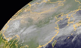 Das heutige Satellitenfoto zeigt, dass vor allem das südliche China verbreitet unter teils dichten Wolken liegt, hierbei fällt gebietsweise häufig Regen. Meist trocken und überwiegend freundlich ist es dagegen vom Nordwesten, über den Norden bis in den Nordosten Chinas.