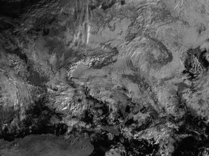 Im Nordwesten Europas sorgt Tief 'Arno' für dichte Wolken. Ansonsten ist es unter Einfluss von Hoch 'Andreas' mit Zentrum über der Ukraine meist freundlich. Deutlich sind die verscheiten Alpen zu sehen.