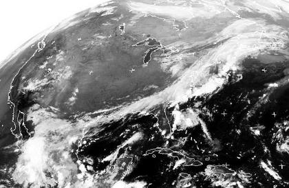 Die Kaltfront eines Tiefs bei Neufundland erstreckt sich mit ihren Wolken über den Osten Nordamerikas bis an die Golfküste. Sie bringt örtlich kräftigen Regen. Schauer und Gewitter bilden sich in der tropisch warmen Luft südlich von ihr. In ihrem Norden bringt dagegen ein Hoch verbreitet freundliches und trockenes Wetter. Lediglich im Nordosten kommt es noch zu ein paar Schauern. Vereinzelte Schauer oder Gewitter bilden sich auch über dem Bergland des Westens. (Bildquelle: NERC Satellite Receiving Station, Dundee University, Scotland, http://www.sat.dundee.ac.uk/)