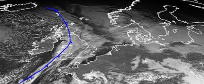 Zähen Hochnebel zeigt das Satellitenbild von Samstag Mittag über einigen Teilen Nord- und Mitteleuropas. Insbesondere über der Ostsee hält er sich verbreitet. Hoch 'Bernhilde' über Südosteuropa bringt aber auch teils große Wolkenlücken und Sonnenschein, vor allem über Nordfrankreich und Süddeutschland. Von Island über Großbritannien bis etwa westlich der Bretagne liegt die Kaltfront von Nordmeertief 'Jorrit', die sich morgen anschickt mit etwas Regen und Schnee die seit Tagen andauernde Hochdrucklage auch in Deutschland abzuschwächen. (Bildquelle: NERC Satellite Receiving Station, Dundee University, Scotland, http://www.sat.dundee.ac.uk/)
