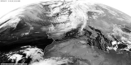 Das Sturmtief 'Hans' westlich von Skandinavien bringt wechselhaftes Wetter im gesamten Norden und Westen Europas. Auf dem Sattelitenbild erkennt man seine Kaltfront, die sich von Schweden über Deutschland bis zu den Pyrenäen erstreckt hat. Durch die hohe Labilität auf der Rückseite der Kaltfront haben sich über den Britischen Inseln und der Nordsee verbreitet Schauerwolken entwickelt. Ein weiteres Tief über dem östlichen Mittelmeer hat sich seit gestern abgeschwächt, es sorgt aber heute noch für gewittrige Schauer in der Region. Das Hoch 'Ayaan' bringt heute noch freundliches Wetter nach Osteuropa.
