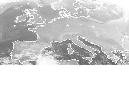 In Südspanien bringt ein Tief über dem Atlantik teils dichte Wolken, sonst sorgt Hochdruckeinfluss verbreitet für Nebel- oder Hochnebel weiten Teilen Europas. Dazu wird es kühler. (Bildquelle: NERC Satellite Receiving Station, Dundee University, Scotland, http://www.sat.dundee.ac.uk/)