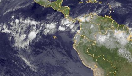 Auf dem Satellitenbild ist sehr gut der Verlauf der innertropischen Konvergenzzone im Ostpazifischen Raum zu erkennen. Über dem Ostpazifik, nördlich der Galapagosinseln sowie im südlichen Mittelamerika und im nördlichen Südamerika entwickeln sich kräftige Schauer und Gewitter, deren Zellen im Satellitenbild sichtbar werden.
