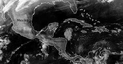 Fast über dem gesamten Mittelamerika befinden sich am Sonntag Mittag kaum Wolken, nur vereinzelt sind kleinere Wolkengebiete zu sehen, so dass es nur selten zu Schauer kommt und das Wetter meist sehr freundlich ist. Dagegen finden sich über den Südwesten der USA Regenwolken und auch im Norden des Südkontinentes sind teils dichtere Wolken vorhanden, die hier häufig Schauer bringen. (Bildquelle: NERC Satellite Receiving Station, Dundee University, Scotland, http://www.sat.dundee.ac.uk/)