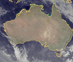 Derzeit findet man über dem australischen Kontinent kaum Wolken. Der Südwesten wird jedoch vom Ausläufer eines Tiefs über dem Südpolarmeer gestreift. Und auch im Südosten erkennt man einige Wolkenfelder, die von Südwesten her an der Küste durchziehen.