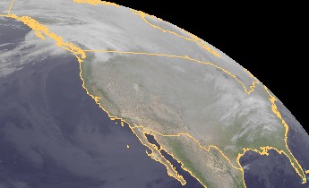 Auf dem heutigen Satellitenfoto sind über dem Westen von Kanada die dichten Wolken eines ausgeprägten Tiefdrucksystems zu erkennen. Hierbei fällt verbreitet kräftiger Schneefall.