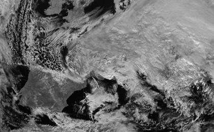 Während weite Teile Europas unter dichten Wolken liegen ist die Iberische Halbinsel nahezu wolkenfrei. Hierfür sorgt leichter Hochdruckeinfluss. Ein Hoch über Großbritannien sorgt auch hier für meist freundliches und trockenes Wetter.