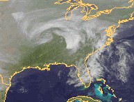 Auf dem heutigen Satellitenfoto ist über dem mittleren Osten der USA ein ausgeprägter Tiefdruckwirbel zu erkennen. In dieser Region kommt es flächendeckend zu Regen, örtlich fallen dort am heutigen Tage bis zu 30 Liter Regen pro Quadratmeter.