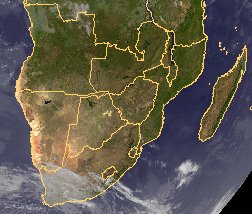 Der Süden von Afrika zeigte sich heute weitgehend wolkenlos oder nur leicht bewölkt. Im Südwesten von Südafrika herrscht dagegen vielfach starke Bewölkung und es fällt zeitweise auch Regen.