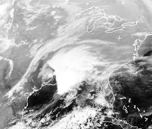 Über Texas, nahe der Golfküste, hat sich ein Tief entwickelt, das sehr kräftige Regenfälle mit Gewittern und Sturmböen bringt. Das Tief zieht noch heute rasch weiter in die Oststaaten, wo es ebenfalls zu kräftigem Regen, an der Atlantikküste auch zu Sturmböen führt.