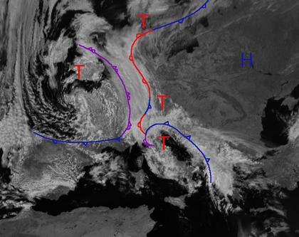 Das Russlandhoch 'Steffi' hält schon seit Tagen die Wolken von Westen ab. So zeigt das Satellitenbild heute meist wolkenlosen Himmel von Polen bis zum Schwarzen Meer und nach Russland. Nach Westen hingegen tummeln sich einige Tiefdruckgebiete mit ihren Wolken. Dabei kommt es zu Regen oder Gewittern von Großbritannien bis zu Adria. Der Hochdruckeinfluss verstärkt sich in den nächsten Tagen in Mitteleuropa wieder und hält die Tiefdruckgebiete weiter fern von Osteuropa.