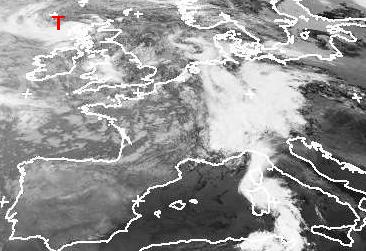 Die dichten Wolken, vor allem über Deutschland, den Alpen und Norditalien gehören zu den Ausläufern des Tiefs 'Winfried' bei Schottland. Die Schauer und Gewitter hinter der Kaltfront sind über Frankreich gut zu erkennen. Einige der Schauer und Gewitter werden heute auch Deutschland erreichen. (Bildquelle: NERC Satellite Receiving Station, Dundee University, Scotland, http://www.sat.dundee.ac.uk/)