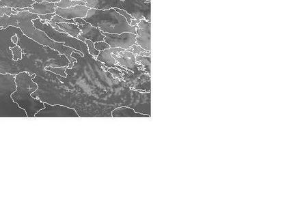Ein Tief über Griechenland sorgt im Mittelmeer vor allem zwischen Italien und der Türkei für Schauer und Gewitter. Dabei sind die Schauer- und Gewitterzellen auf dem Satellitenbild von Samstag früh über dem Mittelmeer gut zu erkennen. (c) DWD/Eumetsat