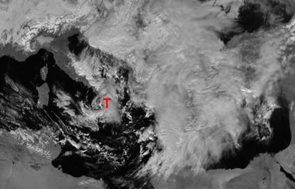 Dichte Wolken erstrecken sich auf dem Satellitenbild von Sonntag Mittag von der Adria und Griechenland bis zum Schwarzen Meer. Sie gehören zu einem Tief über Süditalien sorgen für teils kräftige Schauer und Gewitter über Griechenland. Auf dem Balkan fällt Schnee. Weiter im Westen ist es unter leichtem Hochdruckeinfluss teils freundlich, teils aber auch trüb.
