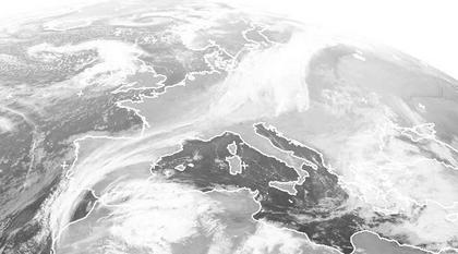 Die Ausläufer des Sturmtiefs 'Xynthia' über dem Nordmeer erstrecken sich vom Baltikum über Süddeutschland und Frankreich bis nach Spanien. Westlich von Großbritannien befindet sich ein weiteres Tief das Morgen in Norddeutschland für Regen und stürmischen Wind sorgt. Auch über dem Mittelmeer bringt ein kleines Tief für Schauer und Gewitter. (Bildquelle: NERC Satellite Receiving Station, Dundee University, Scotland, http://www.sat.dundee.ac.uk/)