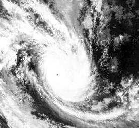 Die große Wolkenspirale wird durch einen Wirbelsturm hervorgerufen, der sich gerade im Pazifik aufhält. Der Taifun 'Percy' bewegt sich zurzeit auf dem Pazifik zwischen Samoa und den Cook-Inseln südwärts. In Böen erreicht er bis zu 275 km/h. Morgen soll er westlich an der Insel Rarotonga vorbeiziehen.